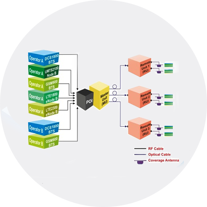 - In-Building Active and Passive DAS system.